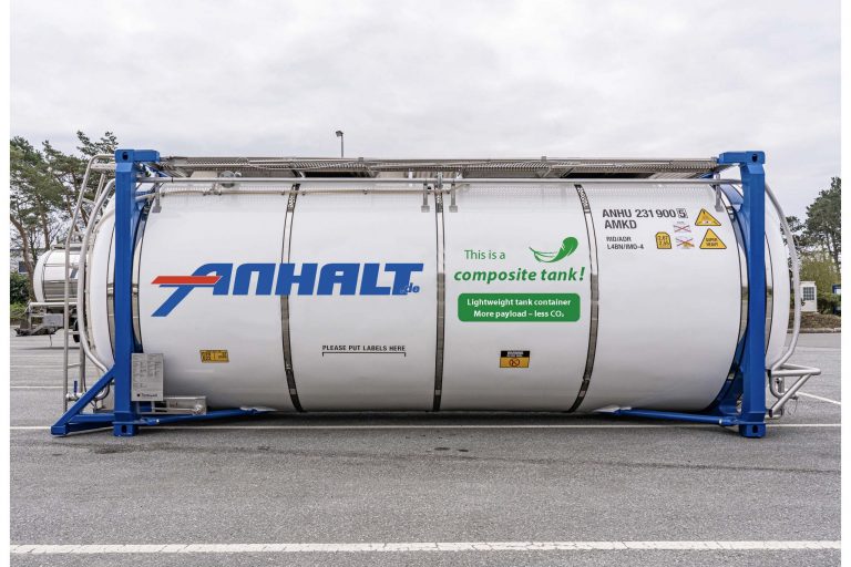 Der erste von insgesamt 20 Composite-Tankcontainern ist eingetroffen.